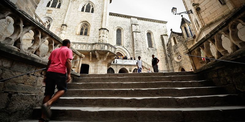 La cité est agrippée à la falaise dans une superposition de maisons et de chapelles. Du château qui couronne cette audacieuse construction se dessine un à-pic de quelques 150 mètres au fond duquel serpente le ruisseau de l’Alzou. Sur le chemin de Saint-Jacques-de-Compostelle, la basilique Saint-Sauveur et la crypte Saint-Amadour, classées au Patrimoine Mondial de l’UNESCO, s’offrent aux visiteurs une fois gravies les 216 marches de l’escalier des pèlerins. La chapelle miraculeuse, l’une des 7 autres chapelles bâties au creux du rocher, abrite son joyau, la Vierge Noire vénérée depuis plus d’un millénaire.